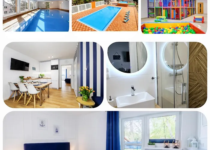 Apartament 1B Niebieskie Apartamenty Poddąbie z basenem krytym, odkrytym, salą zabaw, animacjami